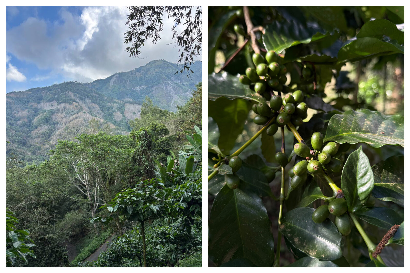 Когда мы стояли на дороге, под сенью лесов, чувствовали приятную прохладу. Такой режим оптимален для кофе: ягода зреет медленно и успевает набрать природные сахара.